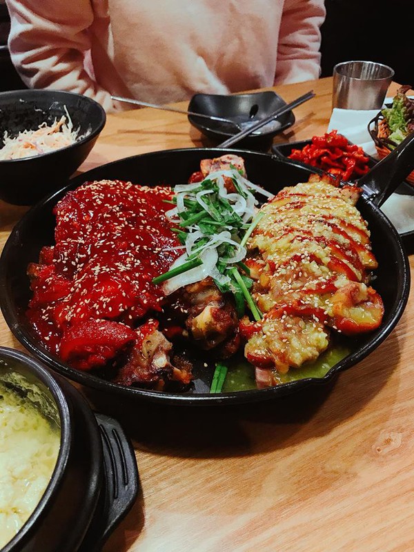 Chân giò mềm, từng miếng thịt như tan trong miệng, nước sốt đậm đà, ăn kèm rau sống và kim chi, uống thêm một ngụm soju, mình không nghĩ có điều gì tuyệt vời hơn thế vào một ngày Seoul chỉ 2 độ C.