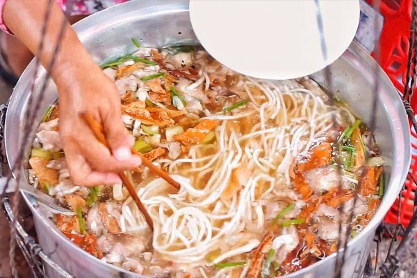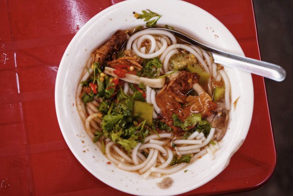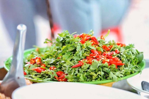 À chưa chưa về được phải ở lại ăn hết cái chợ rồi mới đi được. Tiếp theo tụi mình di chuyển đi kiếm gì đó ăn trưa thì đi về hướng cửa số một của chợ. Vừa tới đầu cửa chợ đập ngay vào mắt tụi mình là một gánh “bánh canh chay” với tô rau nêm ớt nhìn là muốn ghé liền.