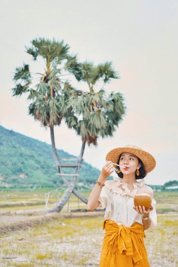Đây là lý do sao mình gọi nó là hai cây dừa thốt nốt đang “yêu nhau” bởi hai cây mọc đan vào nhau giúp nhau vượt qua những cơn gió mạnh thổi suốt ngày từ dãy núi. Ghê ha, viết tới đây muốn có người yêu ghê gớm.